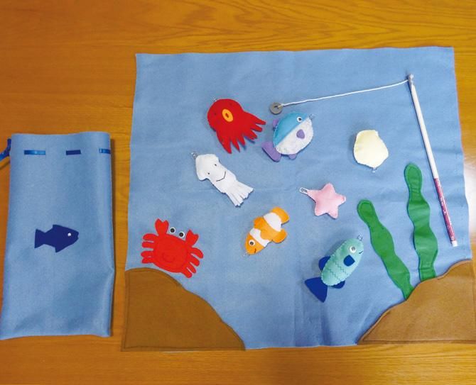 【セット内容】台紙、収納袋、釣り竿、さかなパーツ(5種)※<たこ>と<さかな(緑)>は別売りです